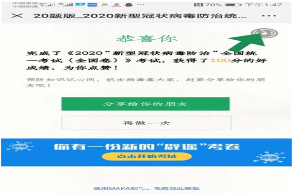 公司紀(jì)委書記陳亞軍以《新型冠狀病毒肺炎防控知識手冊》為參考,針對易混淆的、關(guān)鍵的疫情防控知識,進行考試題目設(shè)計,借助微信平臺發(fā)放答題鏈接,呼吁全體黨員干部主動學(xué)習(xí)防疫知識,積極參與競賽答題。短短半天時間,天谷集團50余名黨員參與答題,95%獲得100分以上的好成績。疫情就是責(zé)任,防控就是命令,在這特殊時期,通過此次知識競賽活動的開展,全體黨員干部了解當(dāng)前的疫情現(xiàn)狀,學(xué)習(xí)疫情相關(guān)防護知識,起到了引領(lǐng)大家正確認(rèn)識疫情,防控疫情的作用。